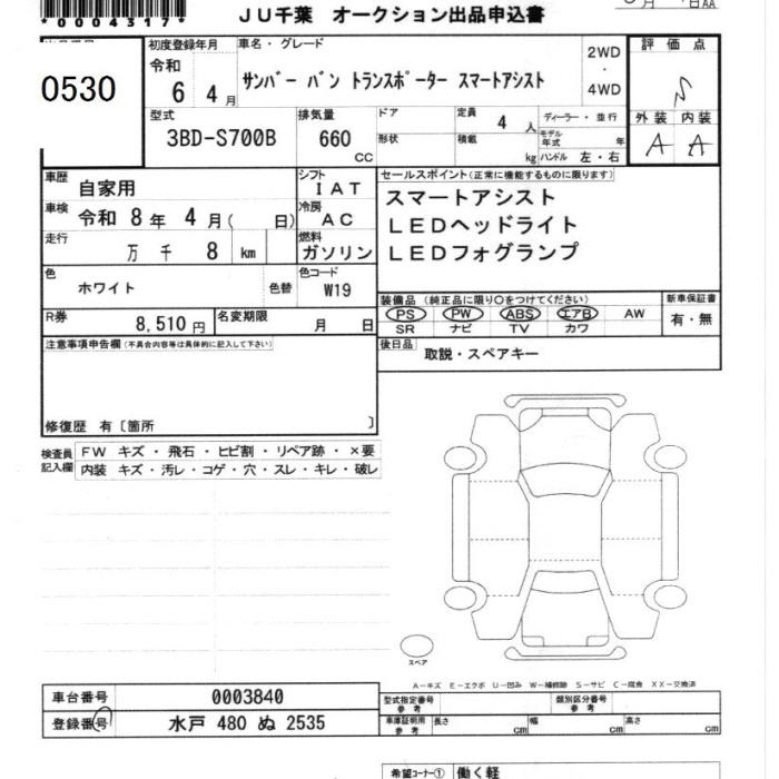SUBARU SAMBAR VAN - лот 530