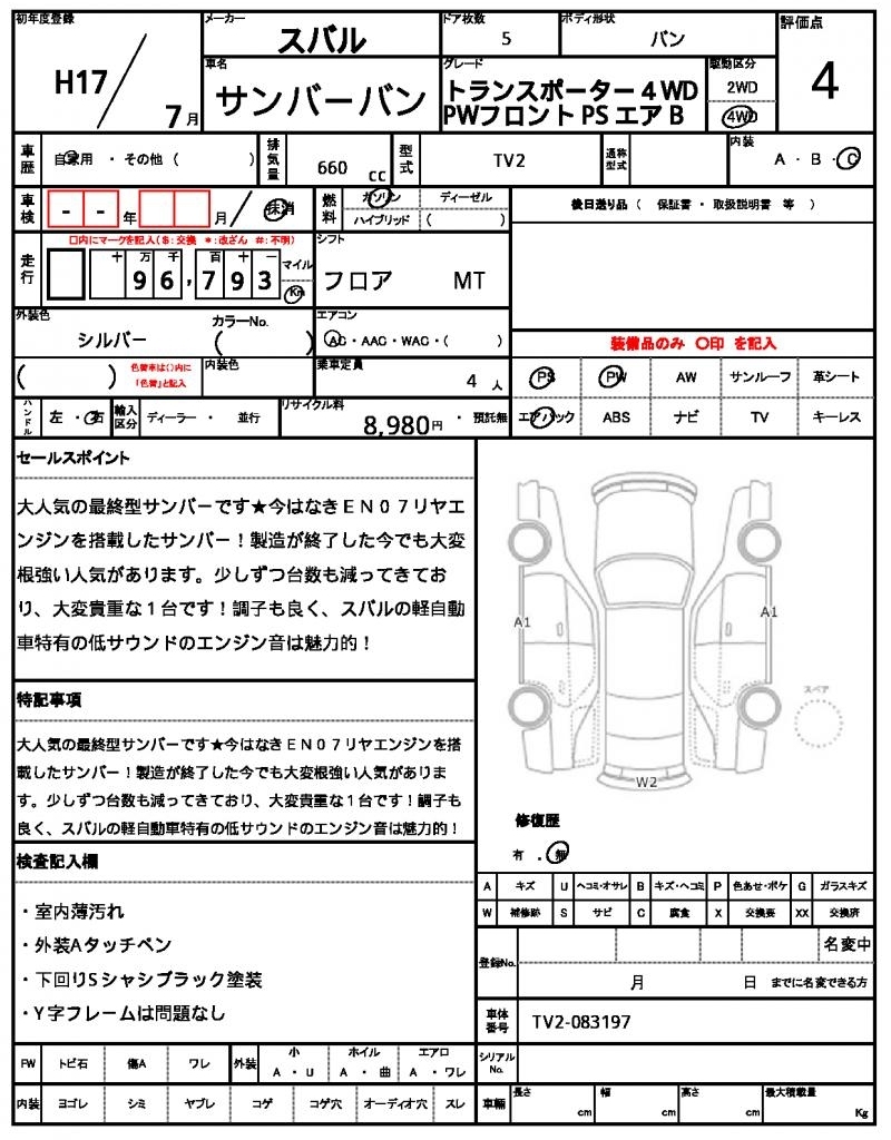 SUBARU SAMBAR VAN - лот 47994