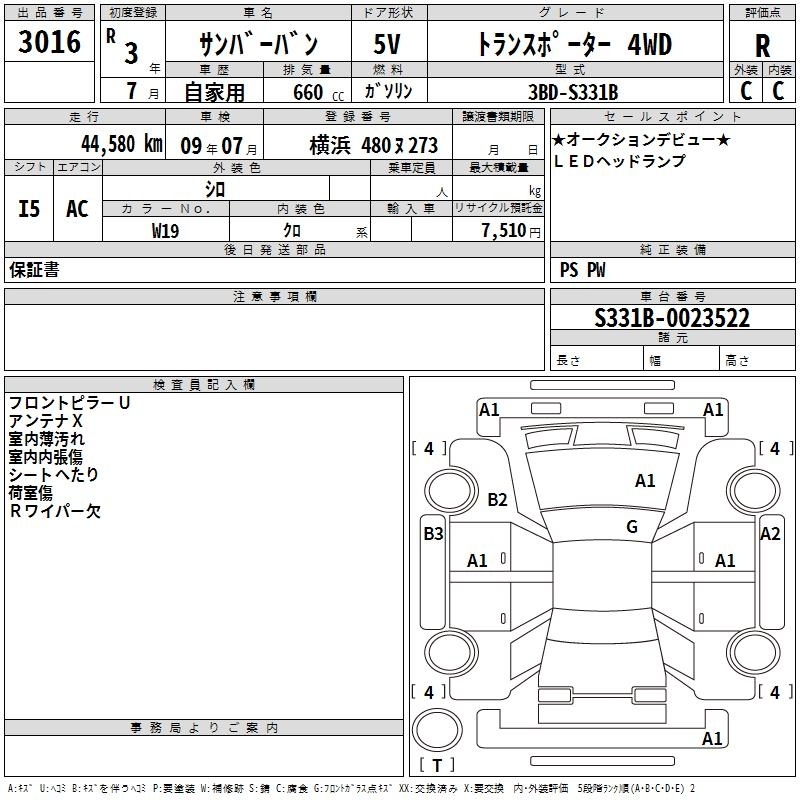 SUBARU SAMBAR VAN - лот 3016