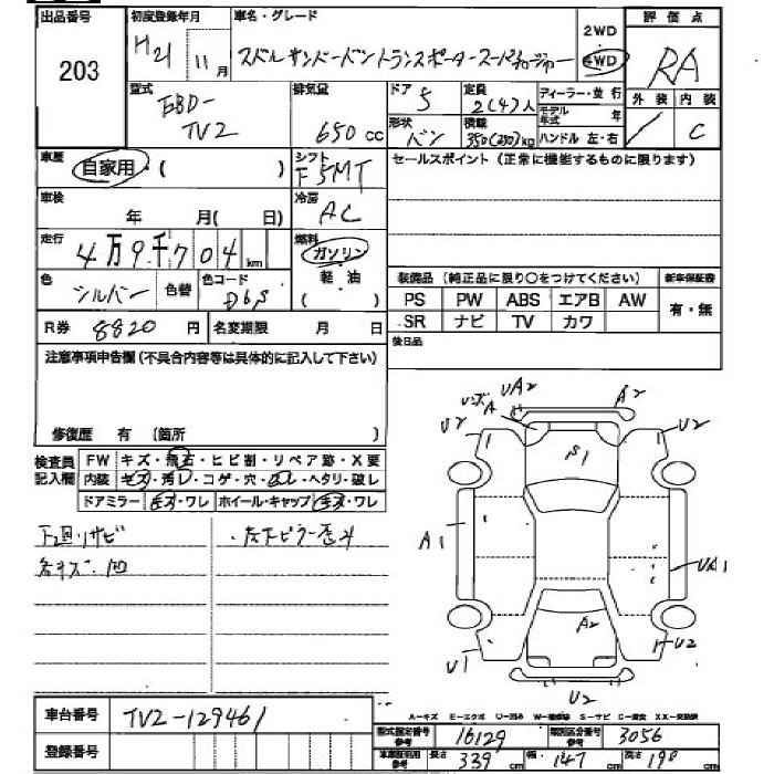 SUBARU SAMBAR VAN - лот 203