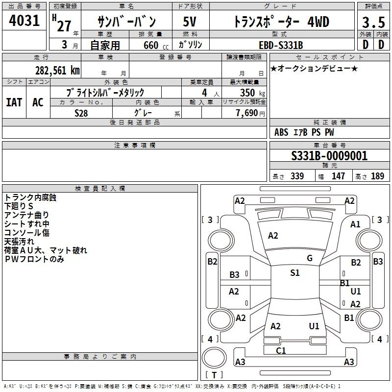 SUBARU SAMBAR VAN - лот 4031