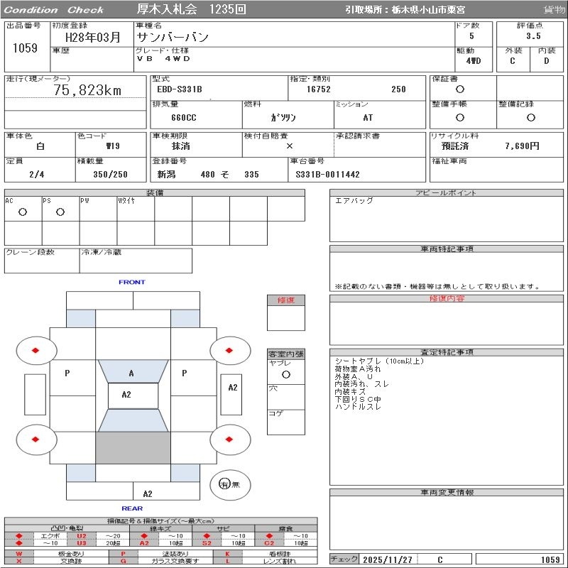 SUBARU SAMBAR VAN - лот 1059