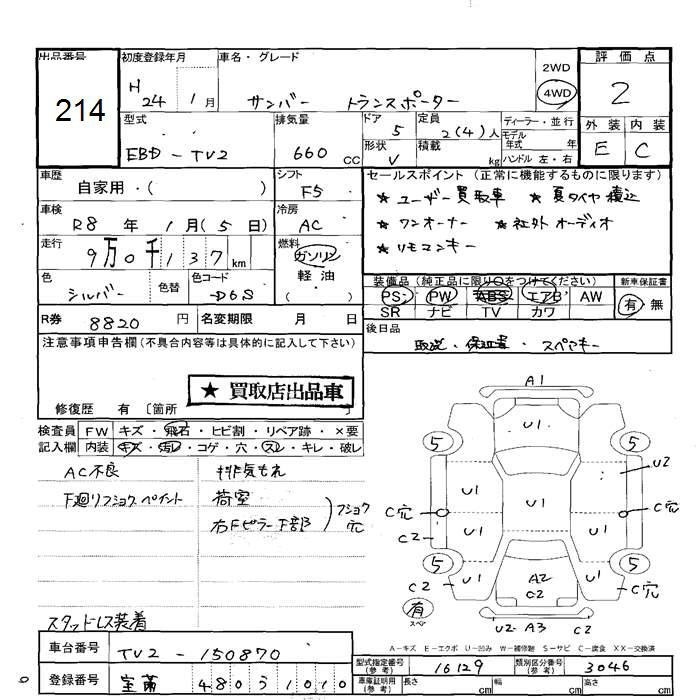 SUBARU SAMBAR VAN - лот 214