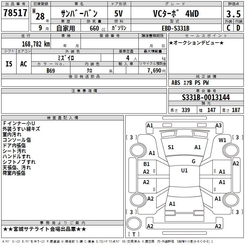 SUBARU SAMBAR VAN - лот 78517