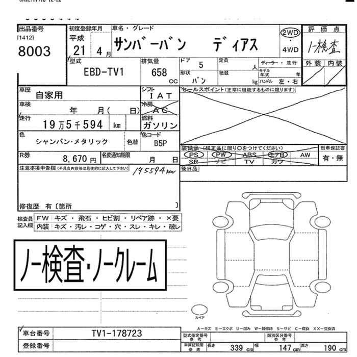 SUBARU SAMBAR VAN - лот 8003