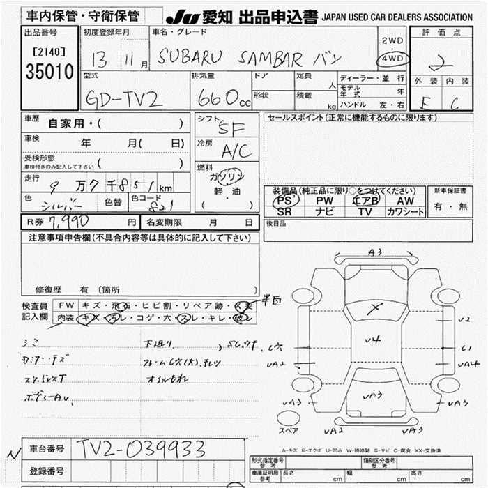 SUBARU SAMBAR VAN - лот 35010