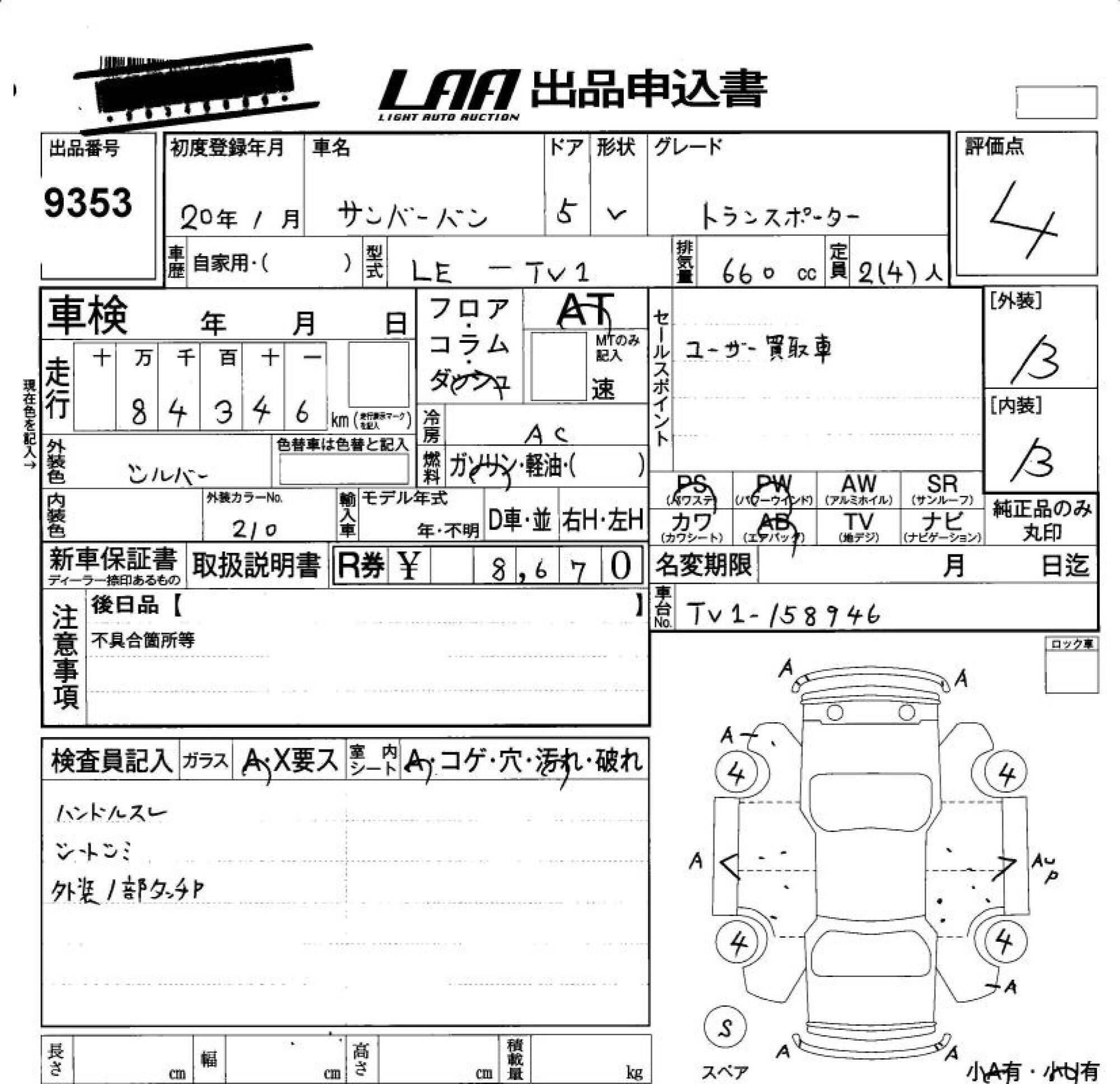 SUBARU SAMBAR VAN - лот 9353