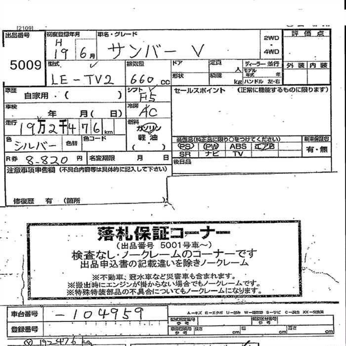 Все аукционы SUBARU SAMBAR VAN