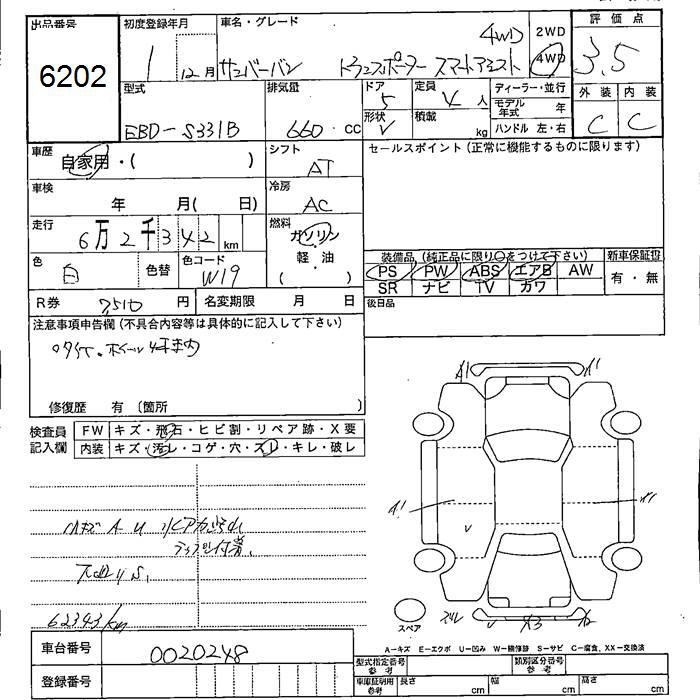 SUBARU SAMBAR VAN - лот 6202