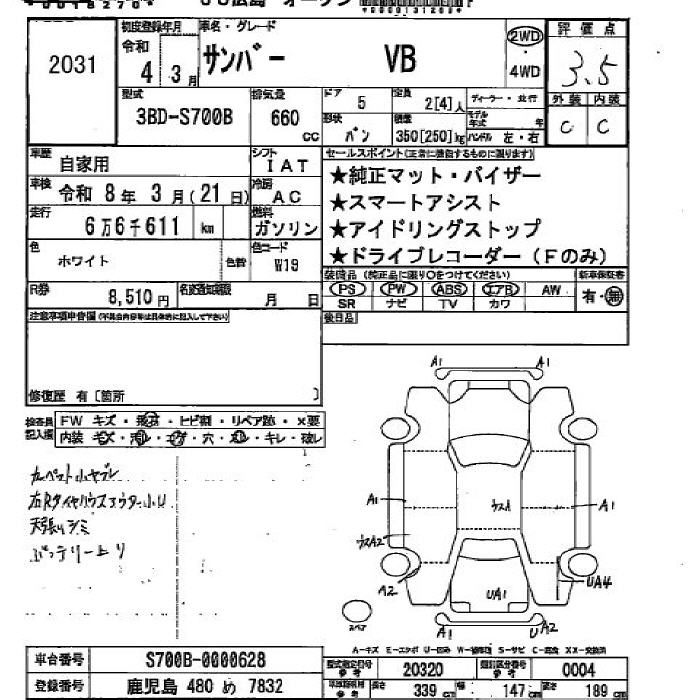 SUBARU SAMBAR VAN - лот 2031