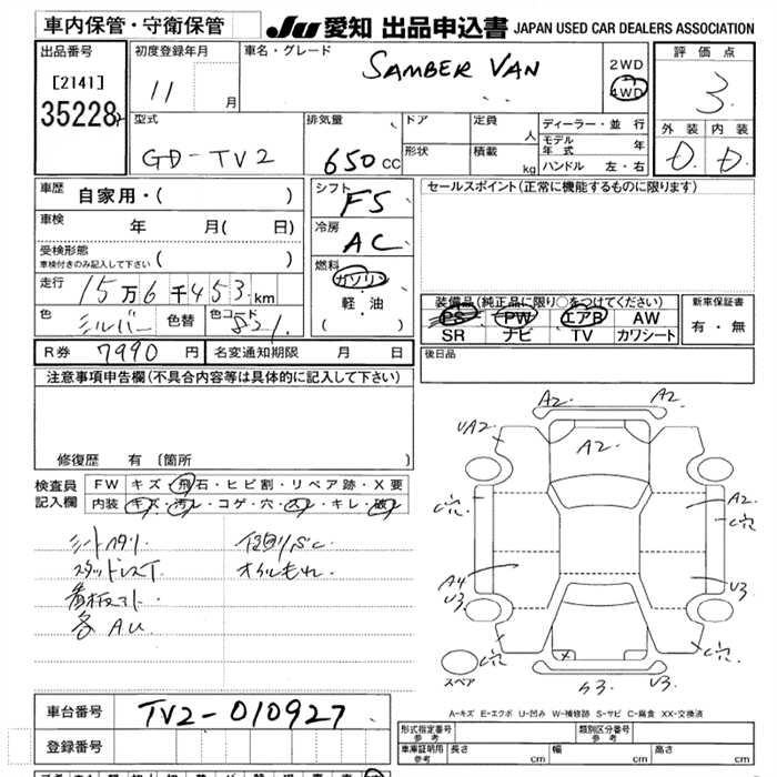 SUBARU SAMBAR VAN - лот 35228