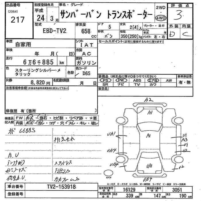 SUBARU SAMBAR VAN - лот 217