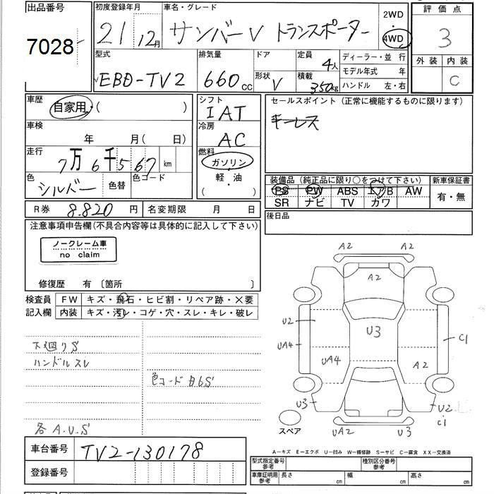 SUBARU SAMBAR VAN - лот 7028