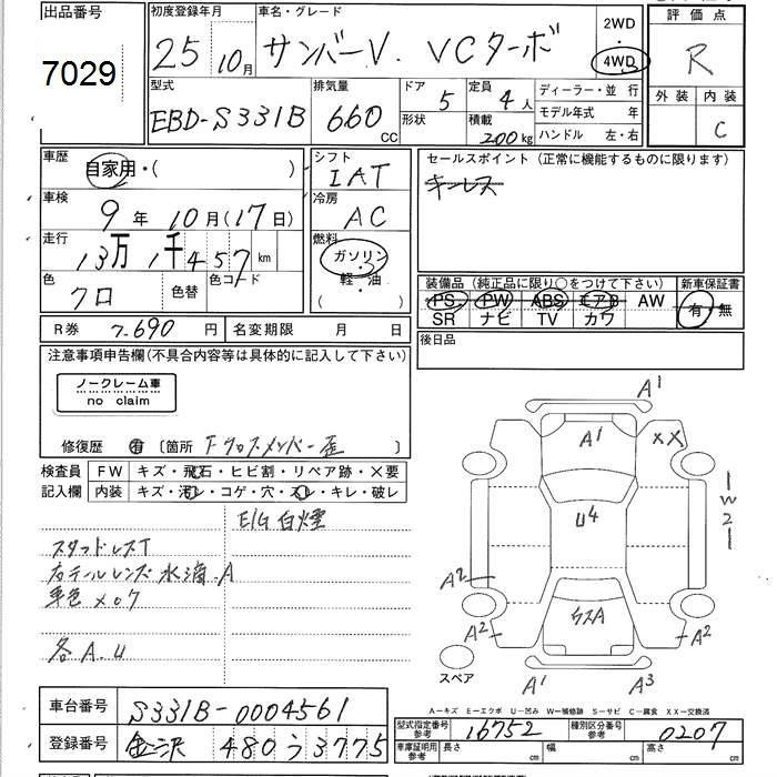 SUBARU SAMBAR VAN - лот 7029