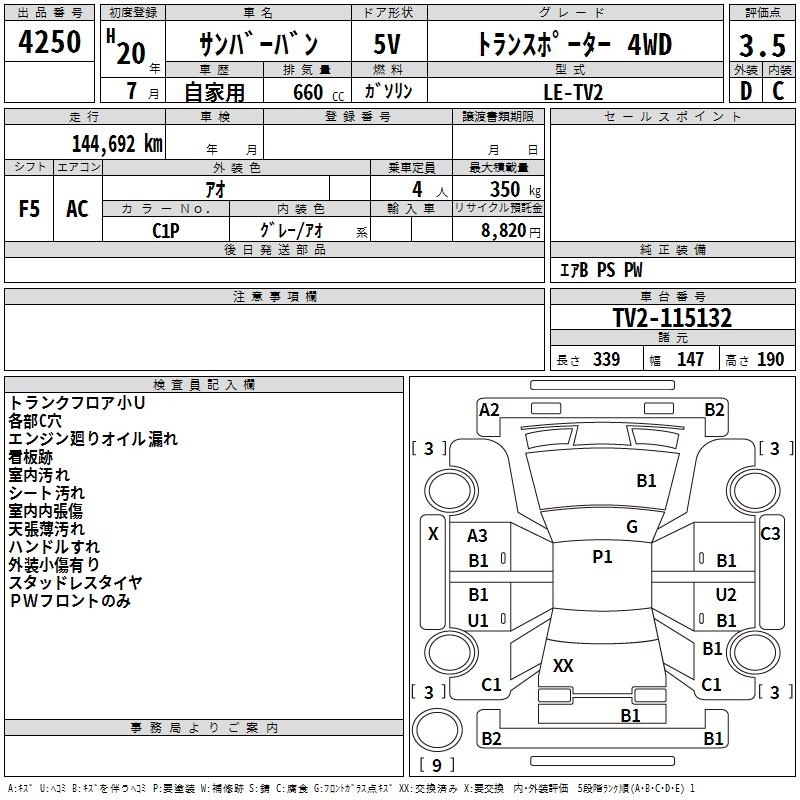 SUBARU SAMBAR VAN - лот 4250