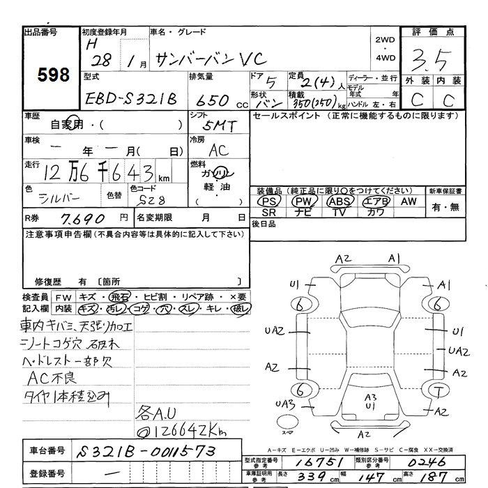 SUBARU SAMBAR VAN - лот 598