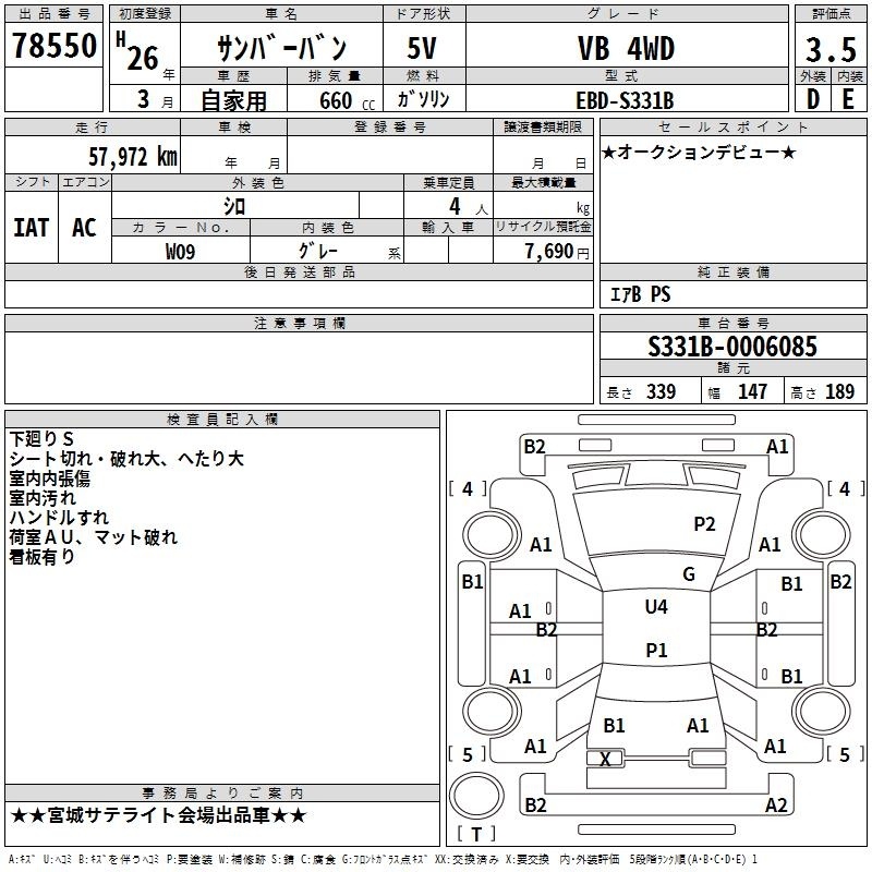 SUBARU SAMBAR VAN - лот 78550