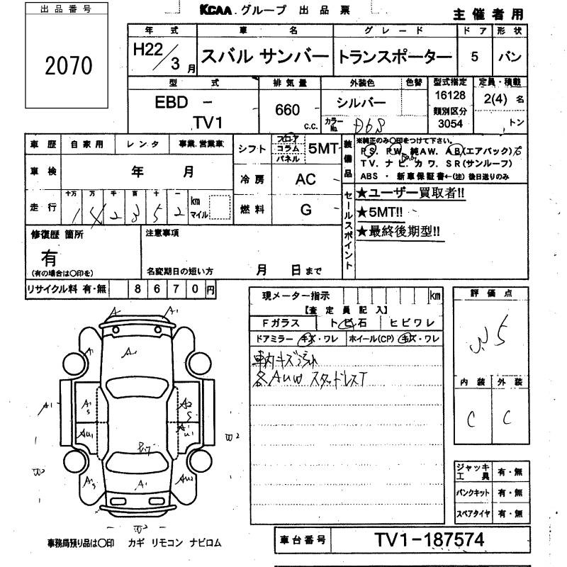 SUBARU SAMBAR VAN - лот 2070