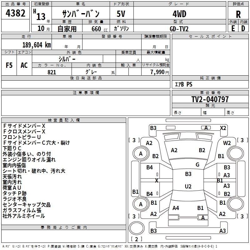 SUBARU SAMBAR VAN - лот 4382