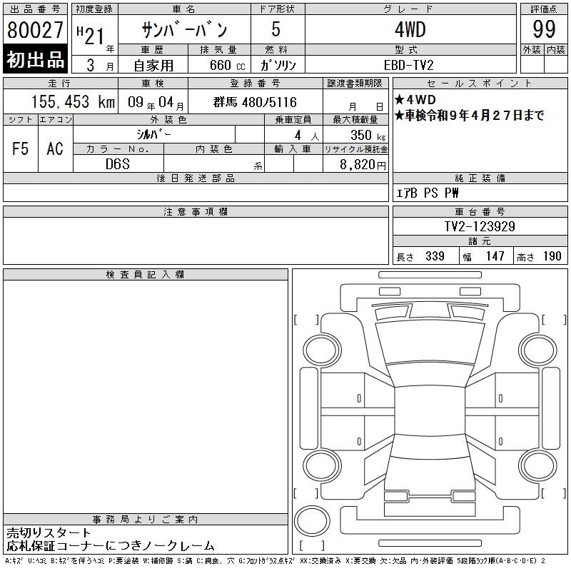 SUBARU SAMBAR VAN - лот 80027