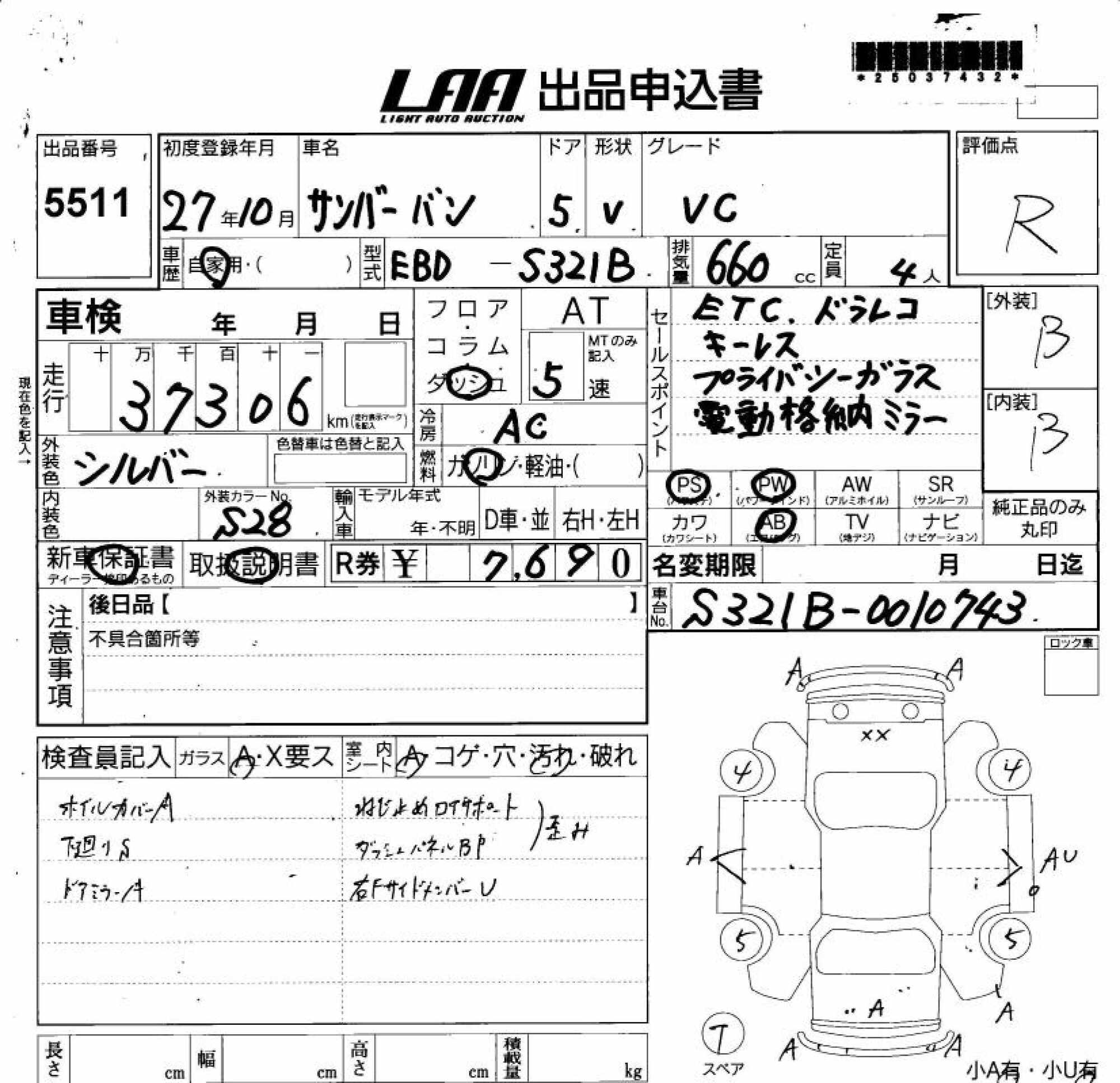 SUBARU SAMBAR VAN - лот 5511