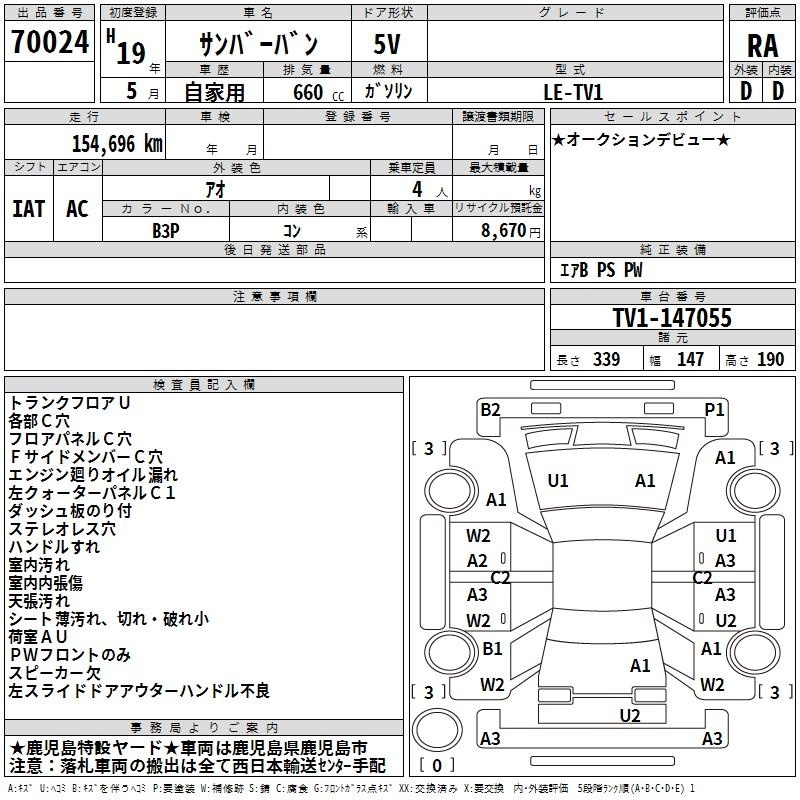 Все аукционы SUBARU SAMBAR VAN