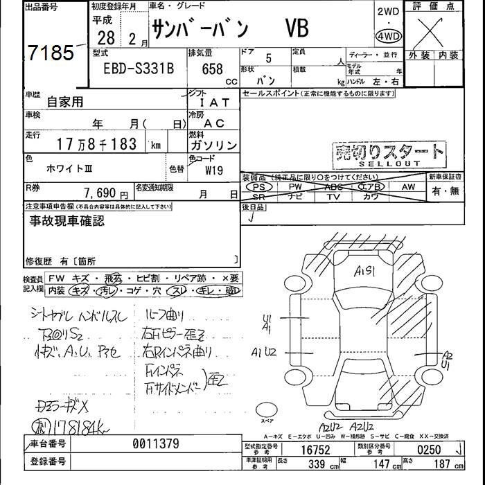 SUBARU SAMBAR VAN - лот 7185