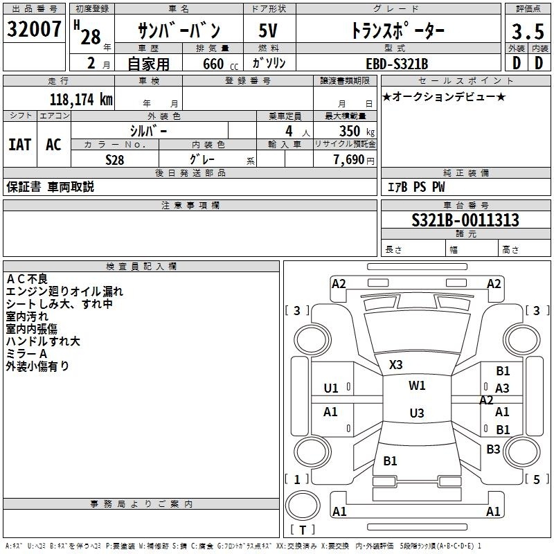 SUBARU SAMBAR VAN - лот 32007