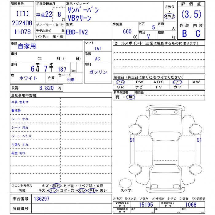 SUBARU SAMBAR VAN - лот 32645