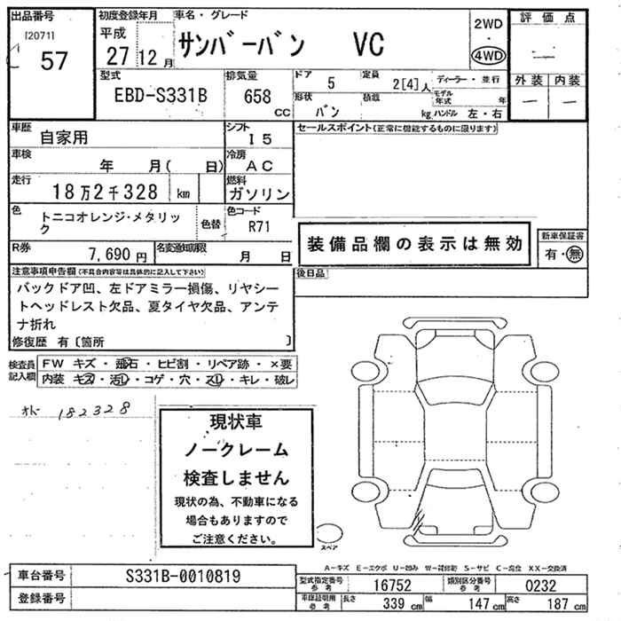 SUBARU SAMBAR VAN - лот 57
