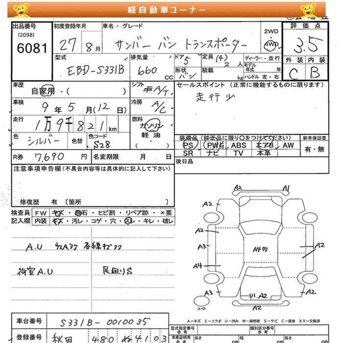 SUBARU SAMBAR VAN - лот 6081