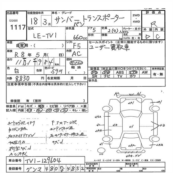 SUBARU SAMBAR VAN - лот 1117