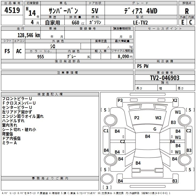 SUBARU SAMBAR VAN - лот 4519