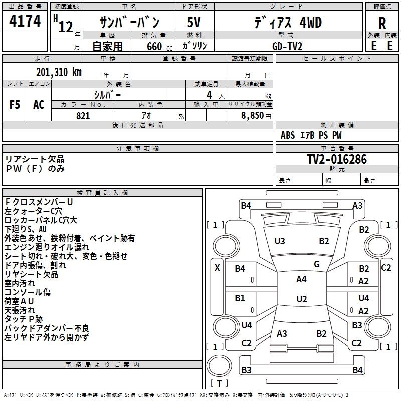 SUBARU SAMBAR VAN - лот 4174