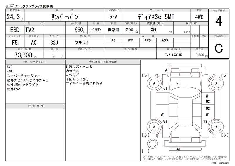 SUBARU SAMBAR VAN - лот 14876