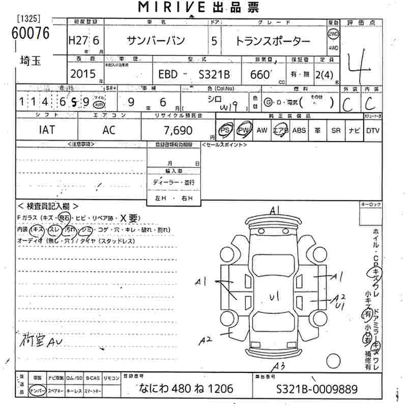 SUBARU SAMBAR VAN - лот 60076