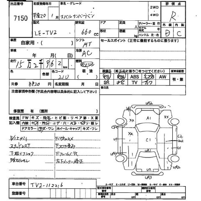 SUBARU SAMBAR VAN - лот 7150