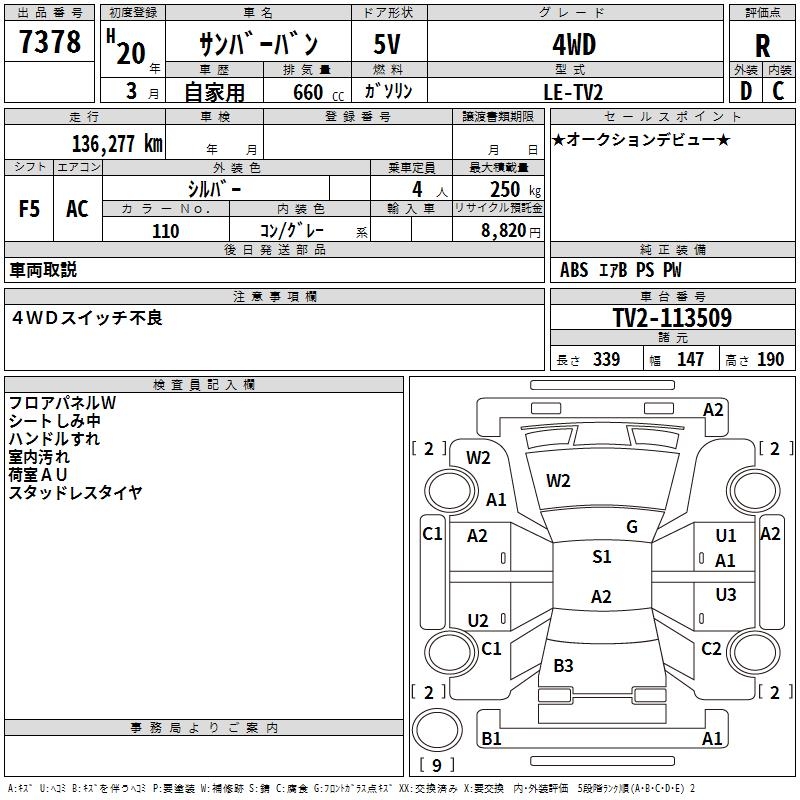 SUBARU SAMBAR VAN - лот 7378