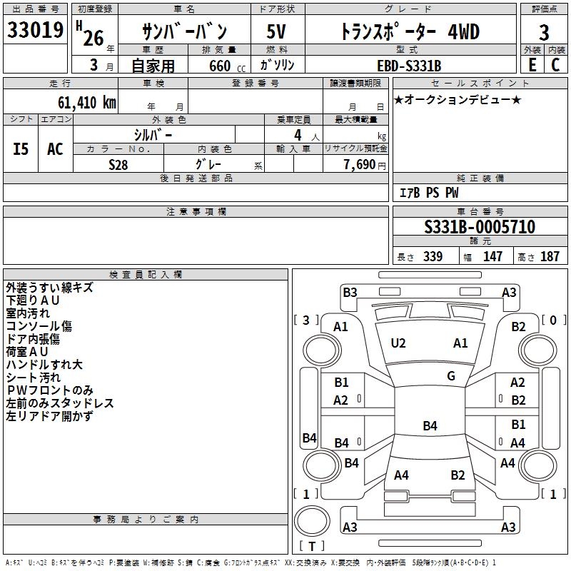SUBARU SAMBAR VAN - лот 33019