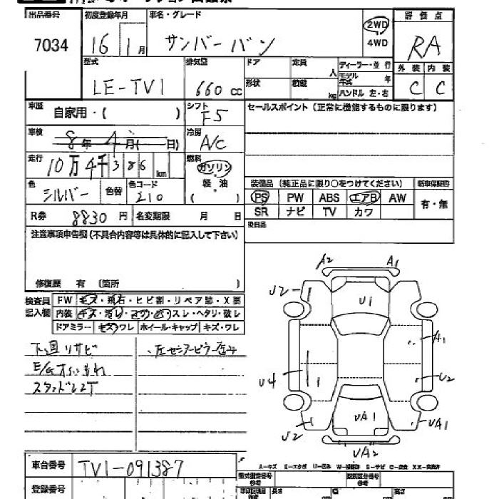 SUBARU SAMBAR VAN - лот 7034