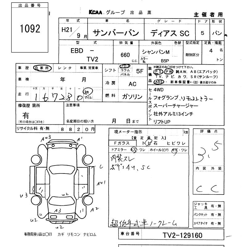 SUBARU SAMBAR VAN - лот 1092