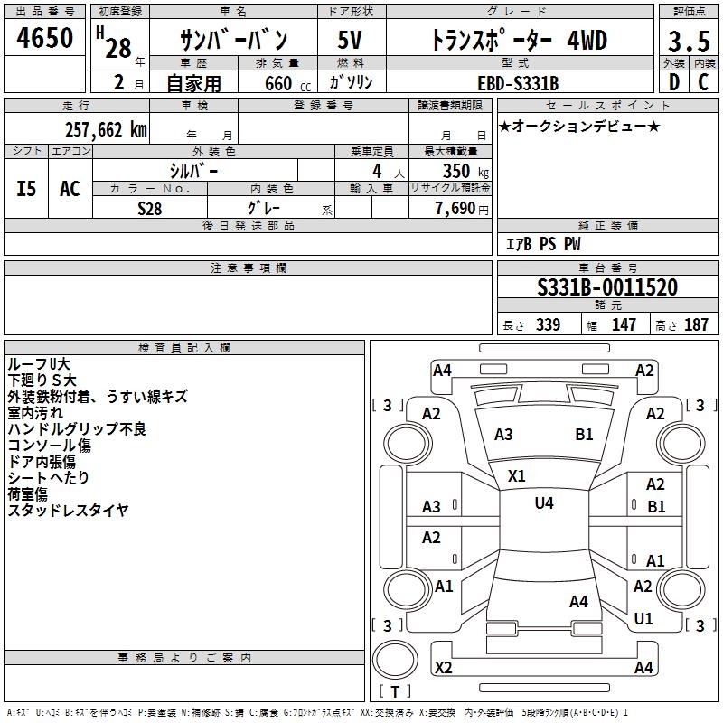 SUBARU SAMBAR VAN - лот 4650