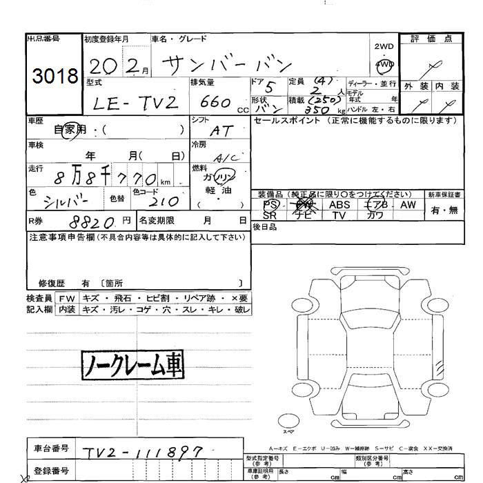 SUBARU SAMBAR VAN - лот 3018