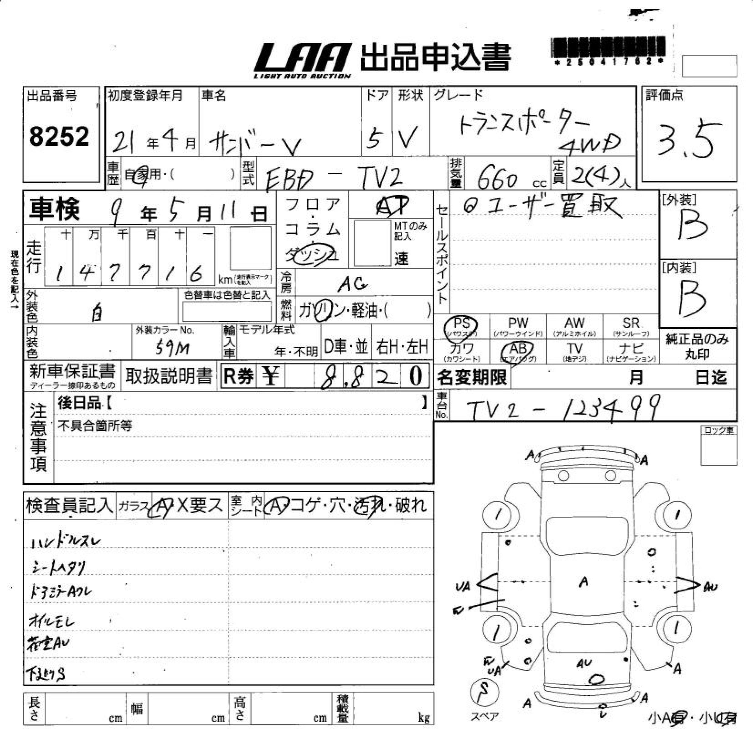 SUBARU SAMBAR VAN - лот 8252