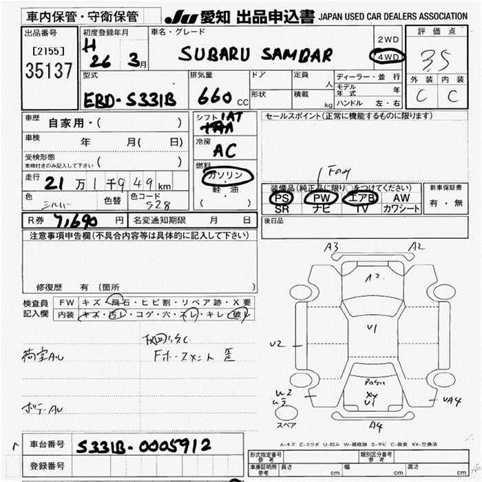 Все аукционы SUBARU SAMBAR VAN