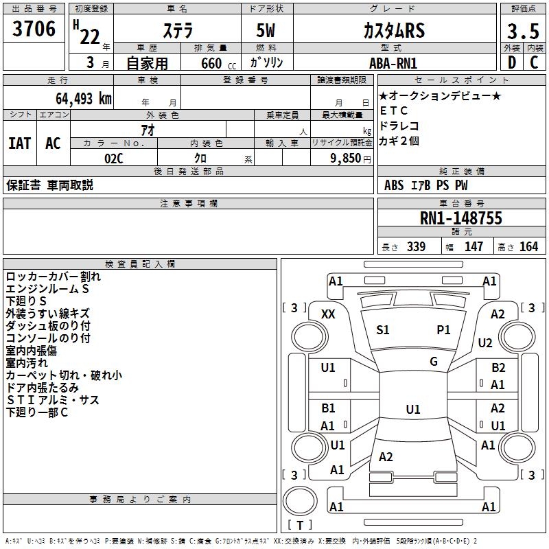 SUBARU STELLA CUSTOM RS - лот 3706