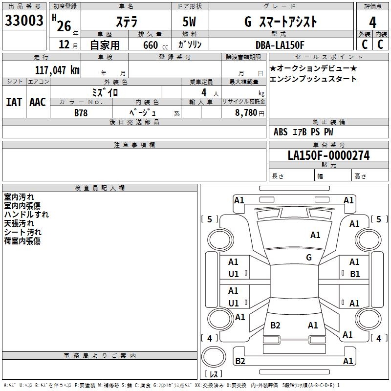 SUBARU STELLA G SMART ASSIST - лот 33003