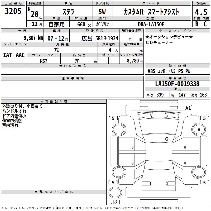 SUBARU STELLA CUSTOM R SMART ASSIST - лот 3205