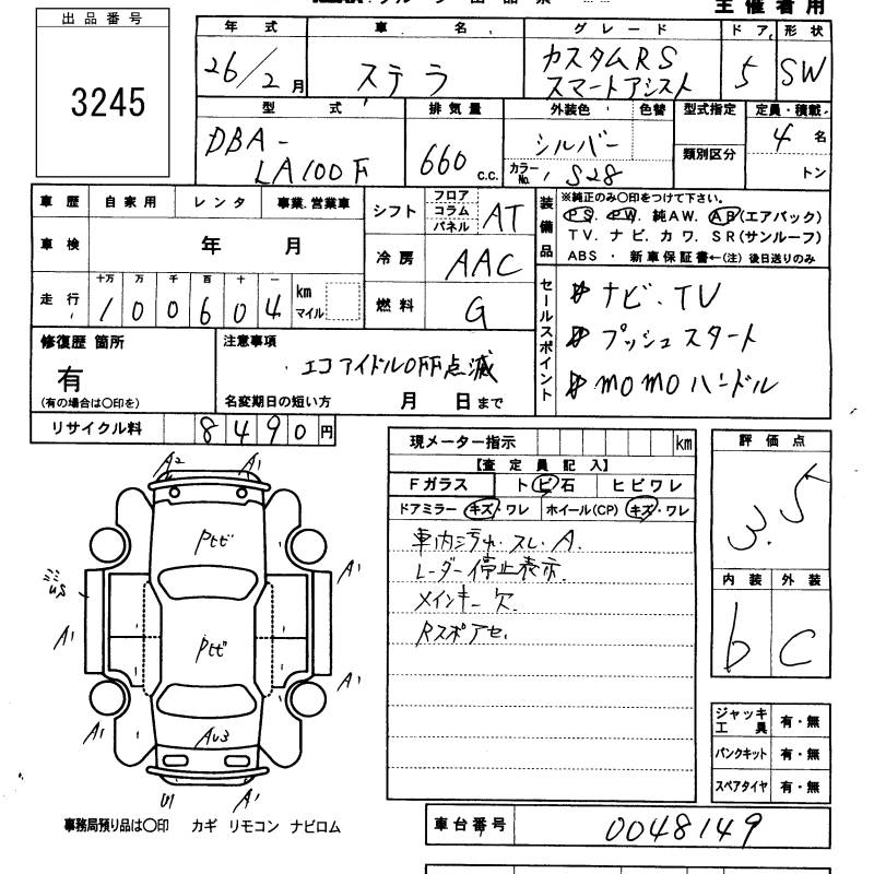SUBARU STELLA CUSTOM RS SMART ASSIST - лот 3245