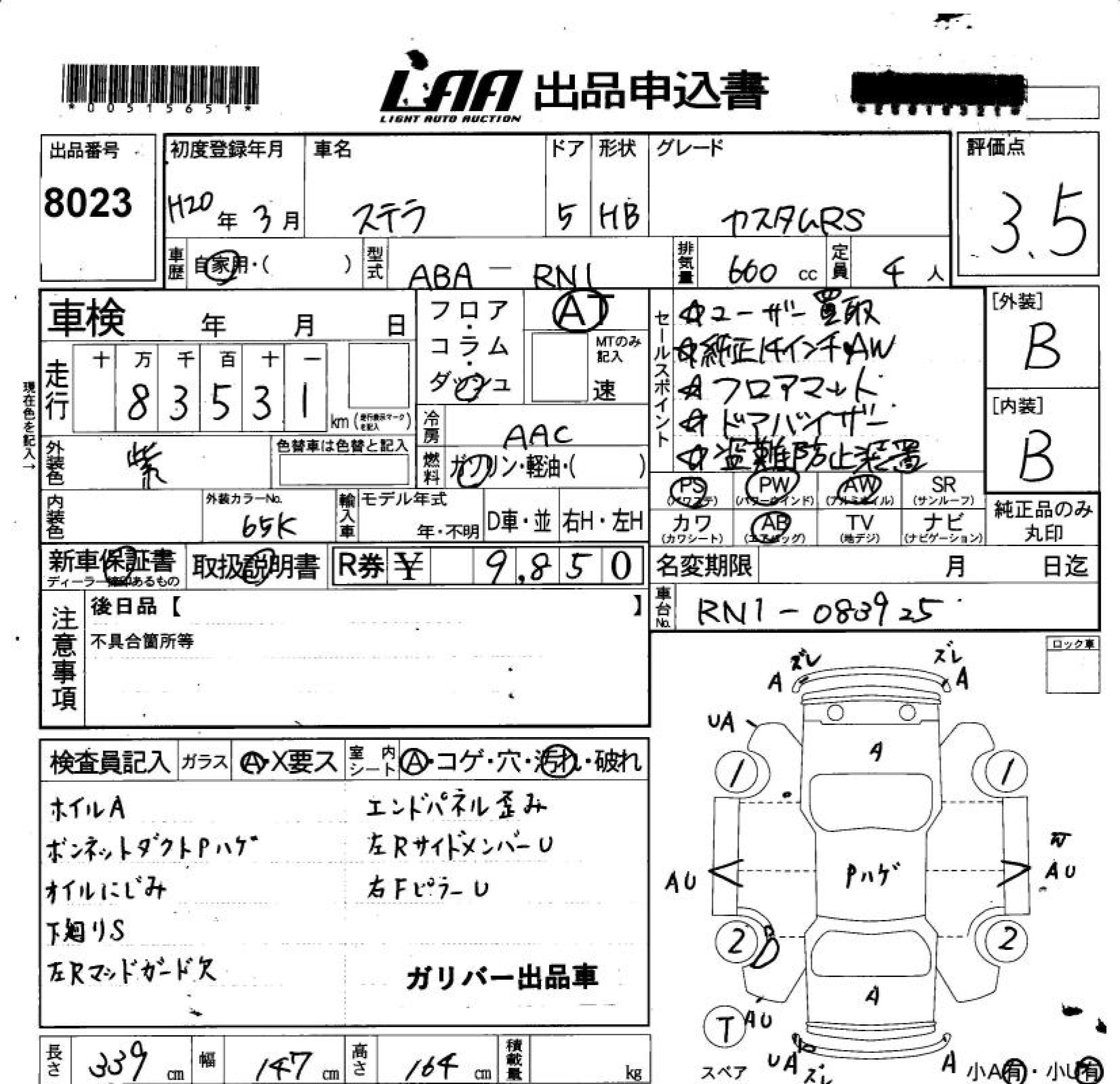 SUBARU STELLA CUSTOM RS - лот 8023